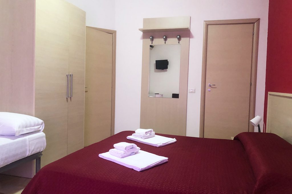 Номер состоит из небольшой прихожей, откуда вы можете пройти в спальную комнату или в ванную комнату. В комнате одна двуспальная кровать и одна односпальная кровать. Есть возможность все кровати сделать односпальными.